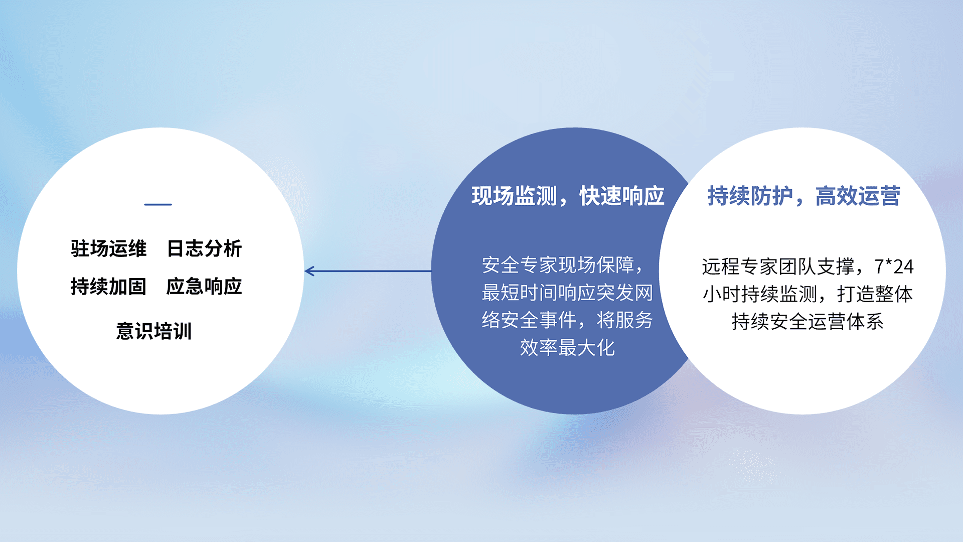 7X24小時持續監測安全事件,保持安全策略有效性,降低資產脆弱性風險,,精準攔截黑客攻擊,,,,減少被黑客利用的機會,,第一時間遏制,,降低損失。。